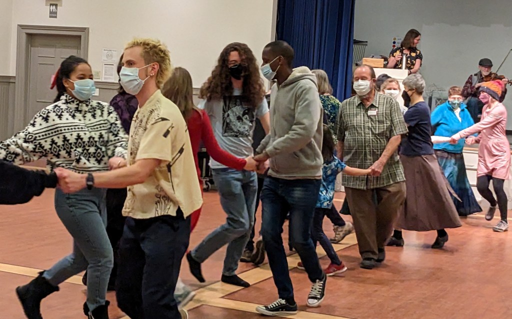 Covid Policy: NBCD encourages masks, though they are no longer required. Be aware that contradance isn’t made to social distance, as whoever your partner, you’ll wind up dancing with everyone in the room. Bring a spare mask to change into, for comfort throughout the evening.