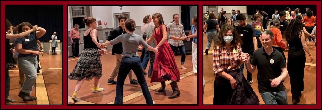 Covid Policy: Please stay home if you feel unwell or anyone in your household has Covid. (Then come next month!) Masking is welcome, but not required. Be aware that contradance isn’t made to social distance, as whoever your partner, you’ll wind up dancing with everyone in the room. Bring a spare mask to change into, for comfort throughout the evening.