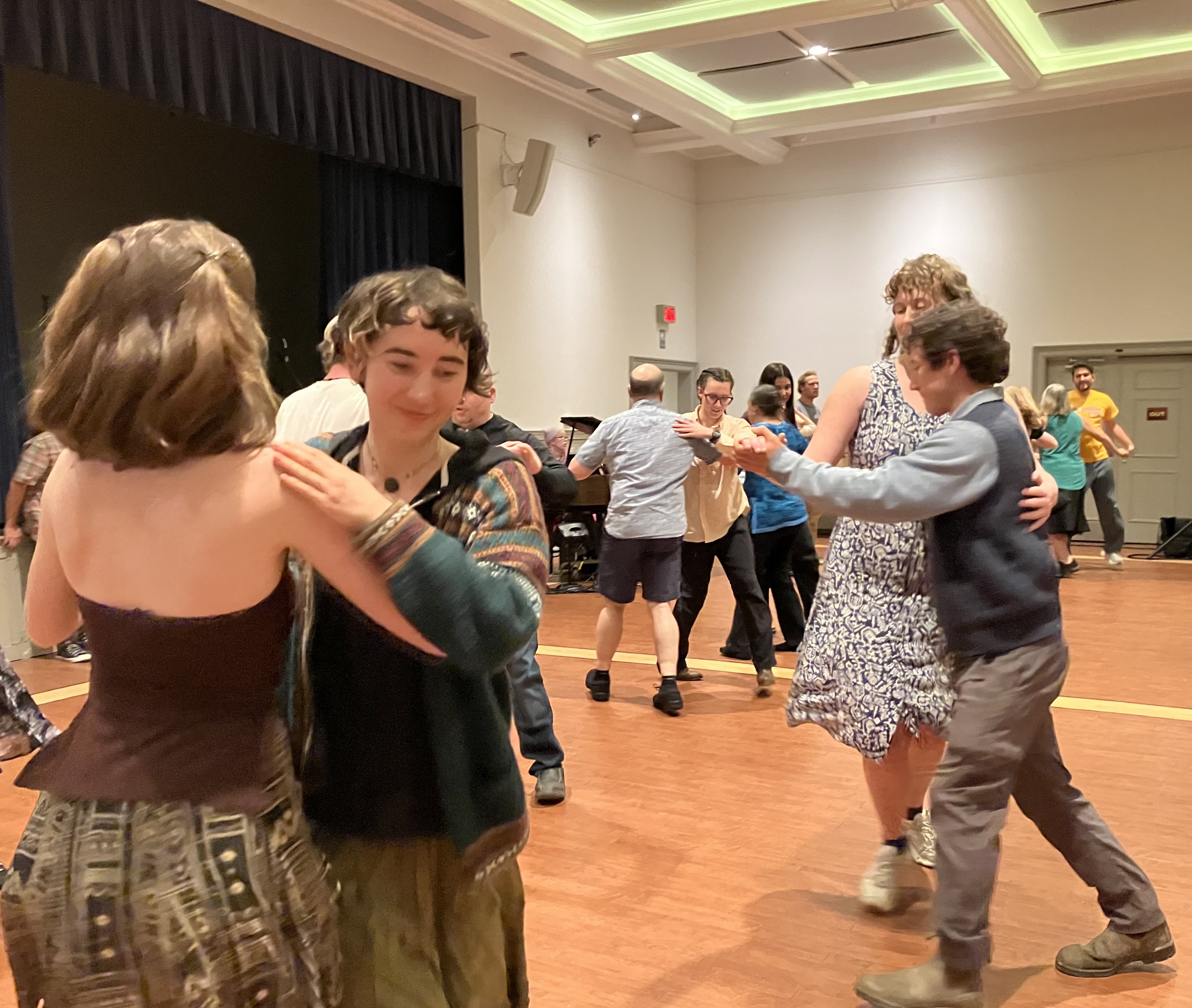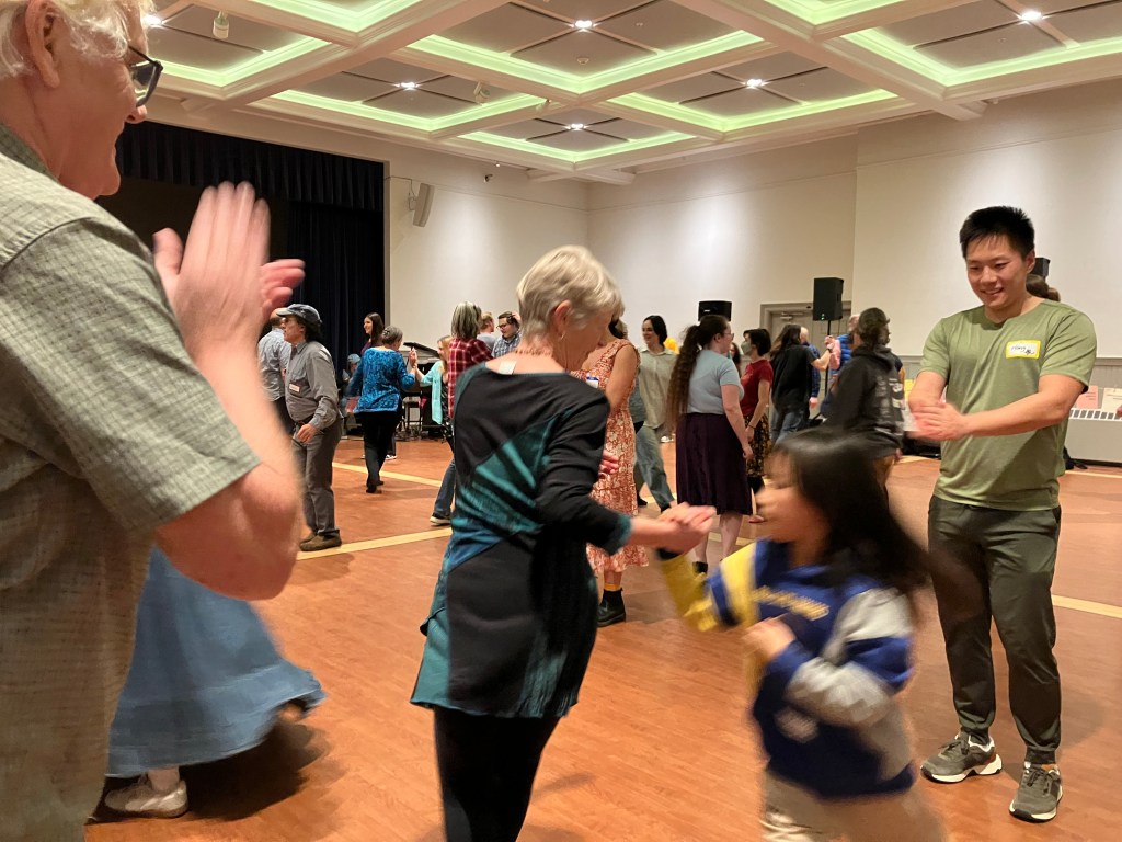 This month, we will start with an introductory lesson at 7:15 PM. This is little earlier than the 7:30 start time you may be accustomed to. Please do come for the lesson if you can — Luke’s lesson is fun, engaging, and leads smoothly right into the evening’s dance program. It’s a perfect start for you or a friend who’s been hesitating to try something new — also a good refresher if you danced long ago and want to ease back into it — and a great way to help welcome newcomers to our community dance if you’re a regular.